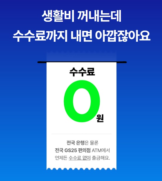 - 전국 은행 및 전국 GS25편의점 ATM 입출금 수수료 무료
