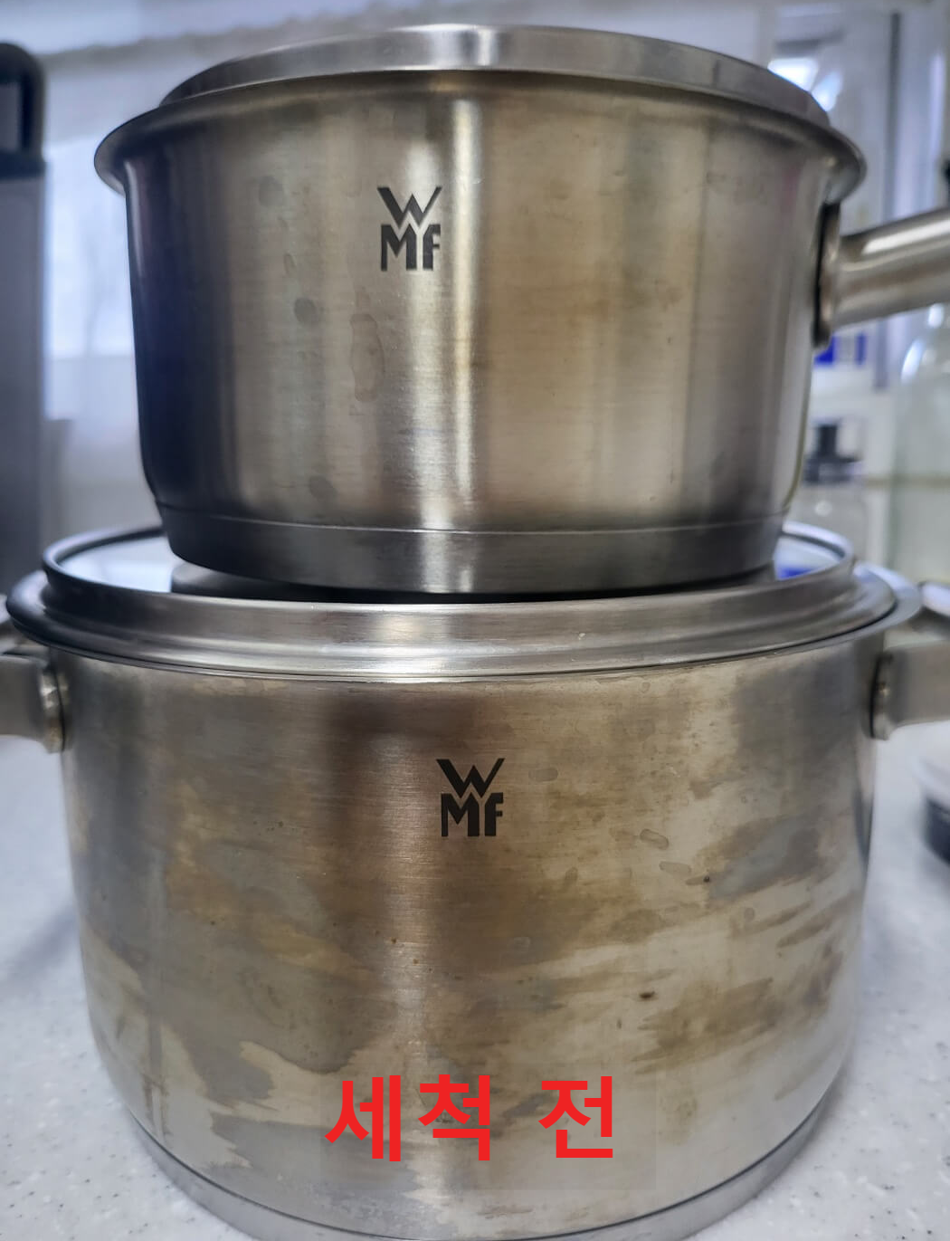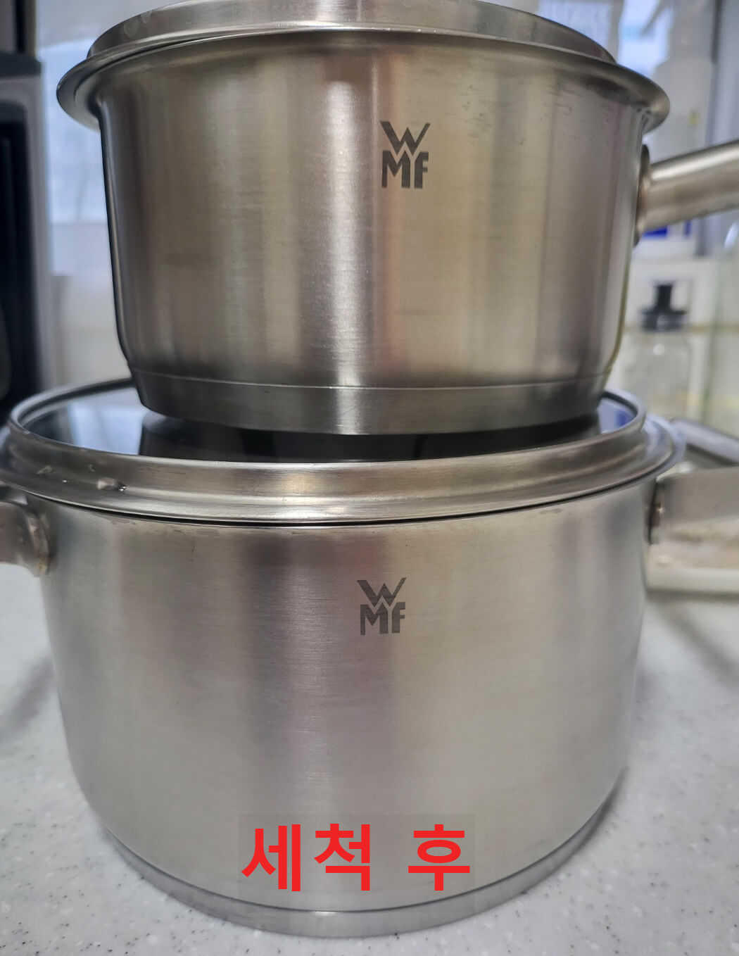 세척 전과 세척 후의 사진입니다. 차이가 느껴지시나요? 이 정도 효과면 다이소 스텐 크리너 추천할 만하지 않나요?