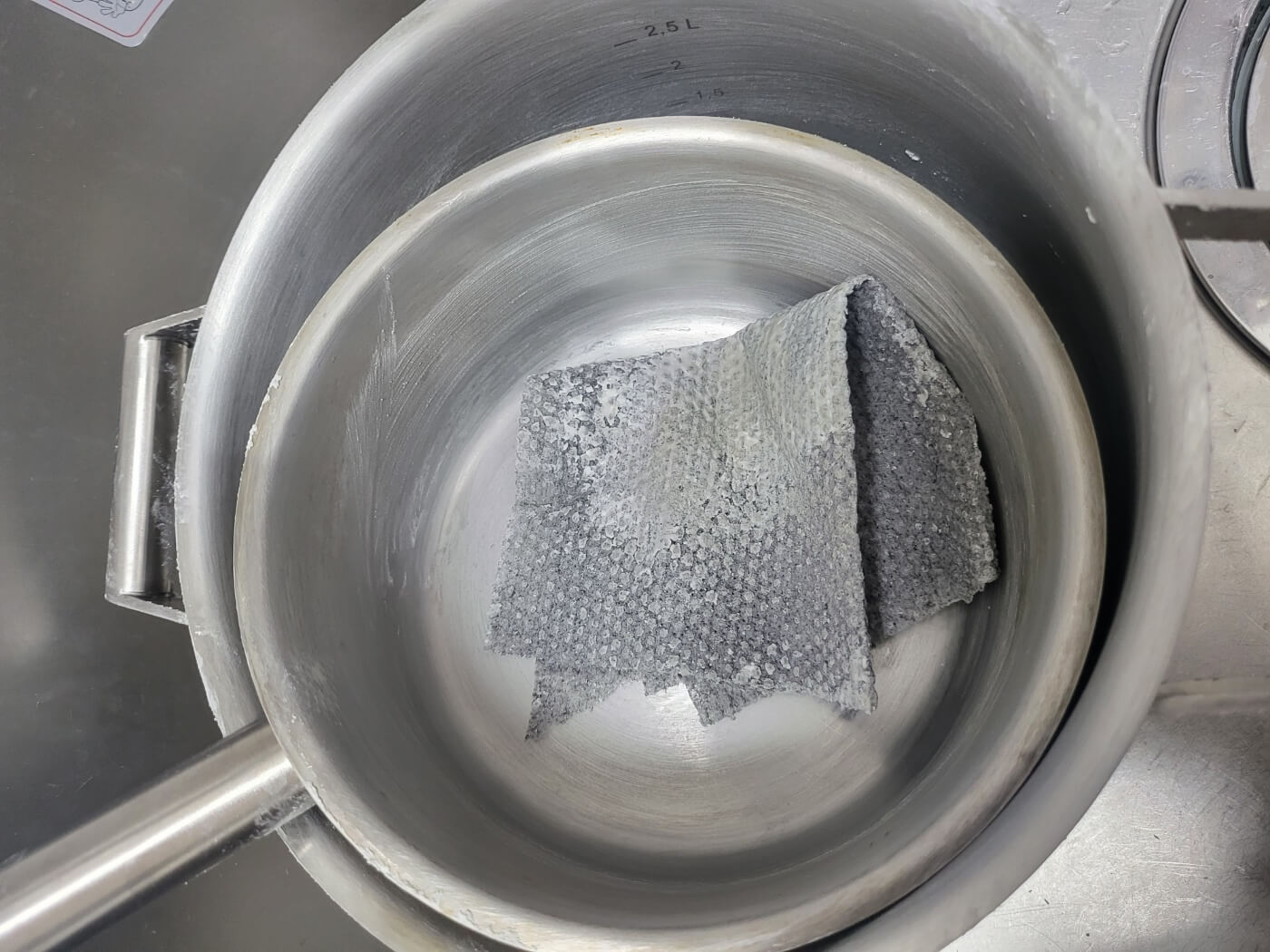 - 식초키친타월 붙이기 : 식초에 적신 키친타월을 냄비에 붙여주고 5분 뒤에 중성세제로 깨끗이 씻어 줍니다.