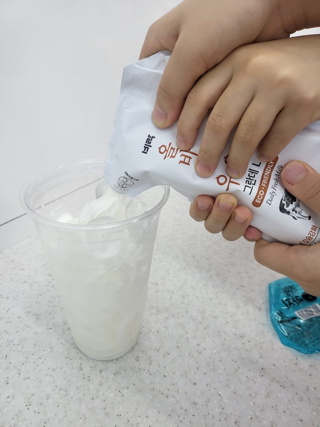 이게 뭐라고 서로 얼음컵에 붓겠다길래 둘이 같이 하라고 했다.