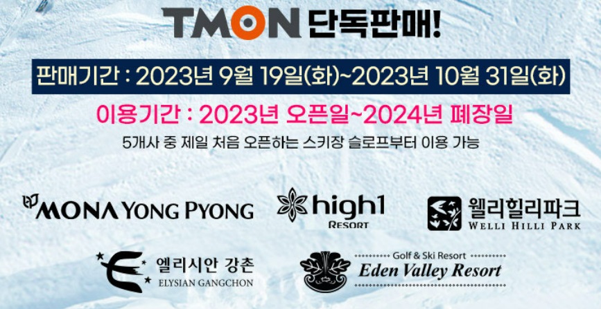 9월 19일 오늘 드디어 티몬에서 X5 시즌패스 23/24 스키 시즌권 단독판매가 시작되었습니다.