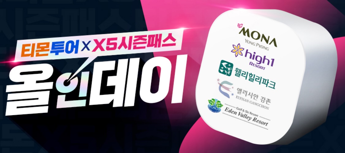 [티몬] [히트상품] X5 시즌패스 23/24 스키 시즌권 용평+하이원+웰리힐리 +엘리시안 강촌+에덴밸리
