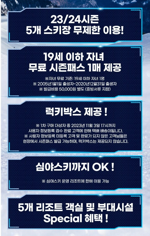 - 23/24 시즌 5개 스키장 무제한 이용