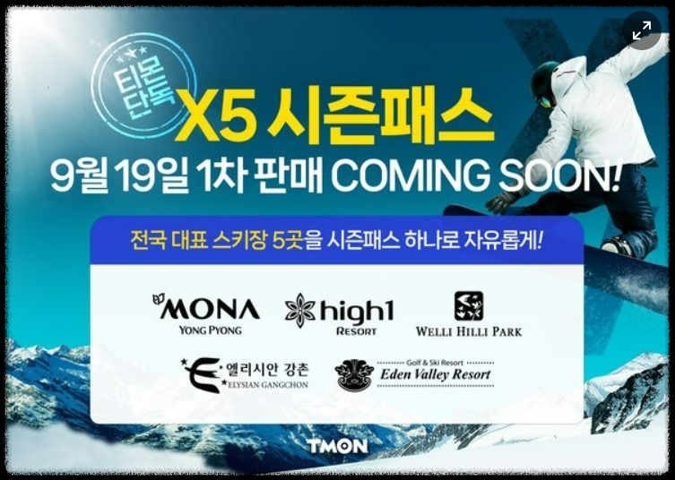 이번 [ X5 시즌패스]권은 9월 19일 티몬에서 단독으로 1차 판매를 실시합니다.